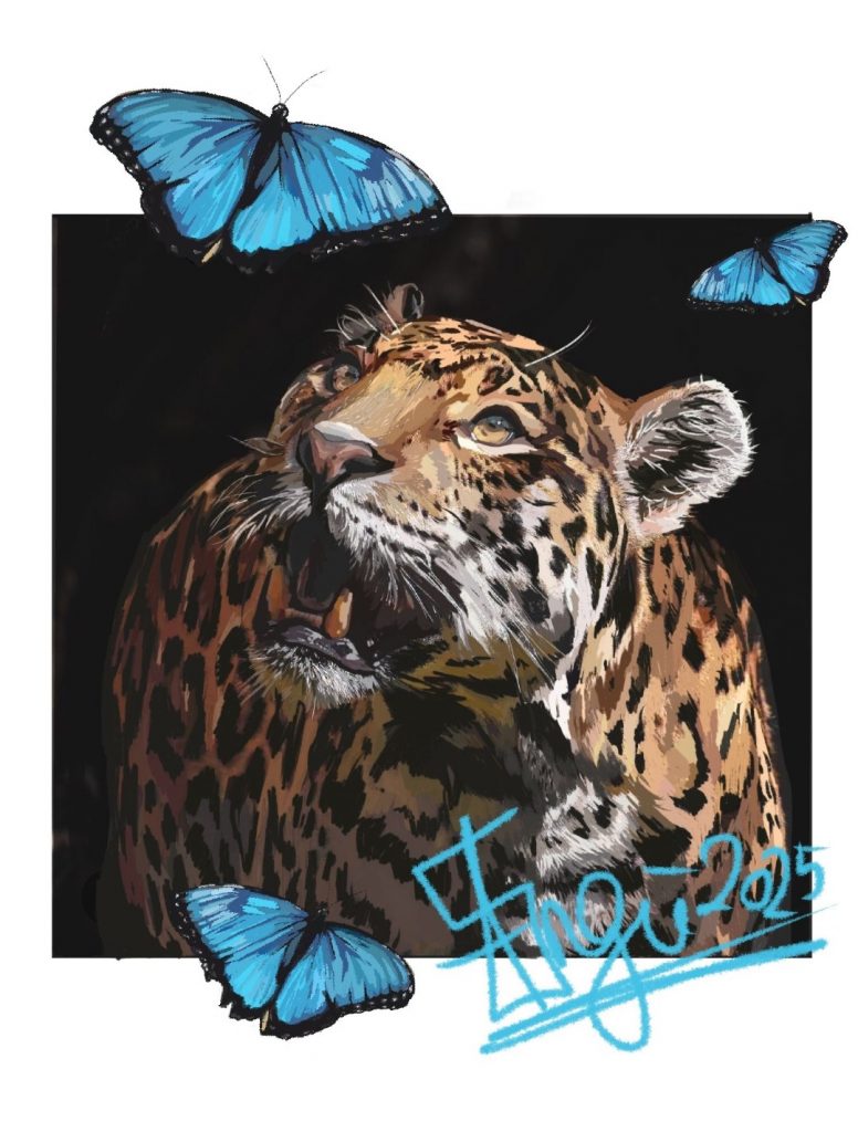 I enjoy creating realistic digital pieces just as much as working traditionally. Most of my realism studies focus on human and wildlife portraits, where I can really dive into details, lighting, and expression. I like adding small creative elements like butterflies, leaves, or subtle color accents to give the artwork more atmosphere and keep it from feeling too static.