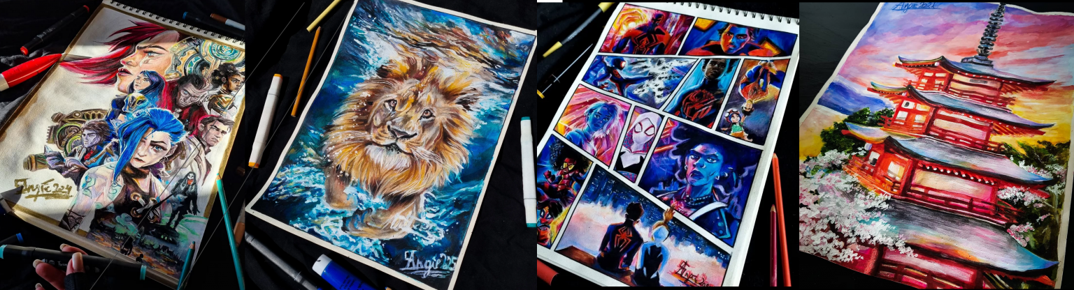 Movies and TV shows; especially Marvel and sci-fi have always fueled my creativity. I love turning superheroes and cinematic characters into traditional artworks, capturing their intensity, emotion, and visual impact while adding my own artistic interpretation.