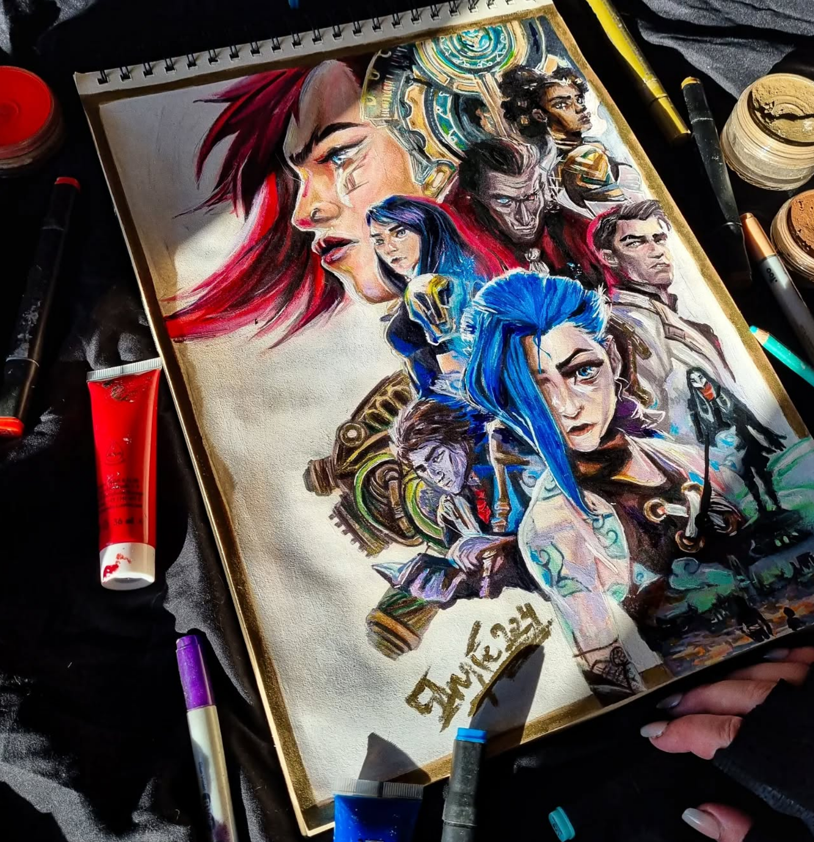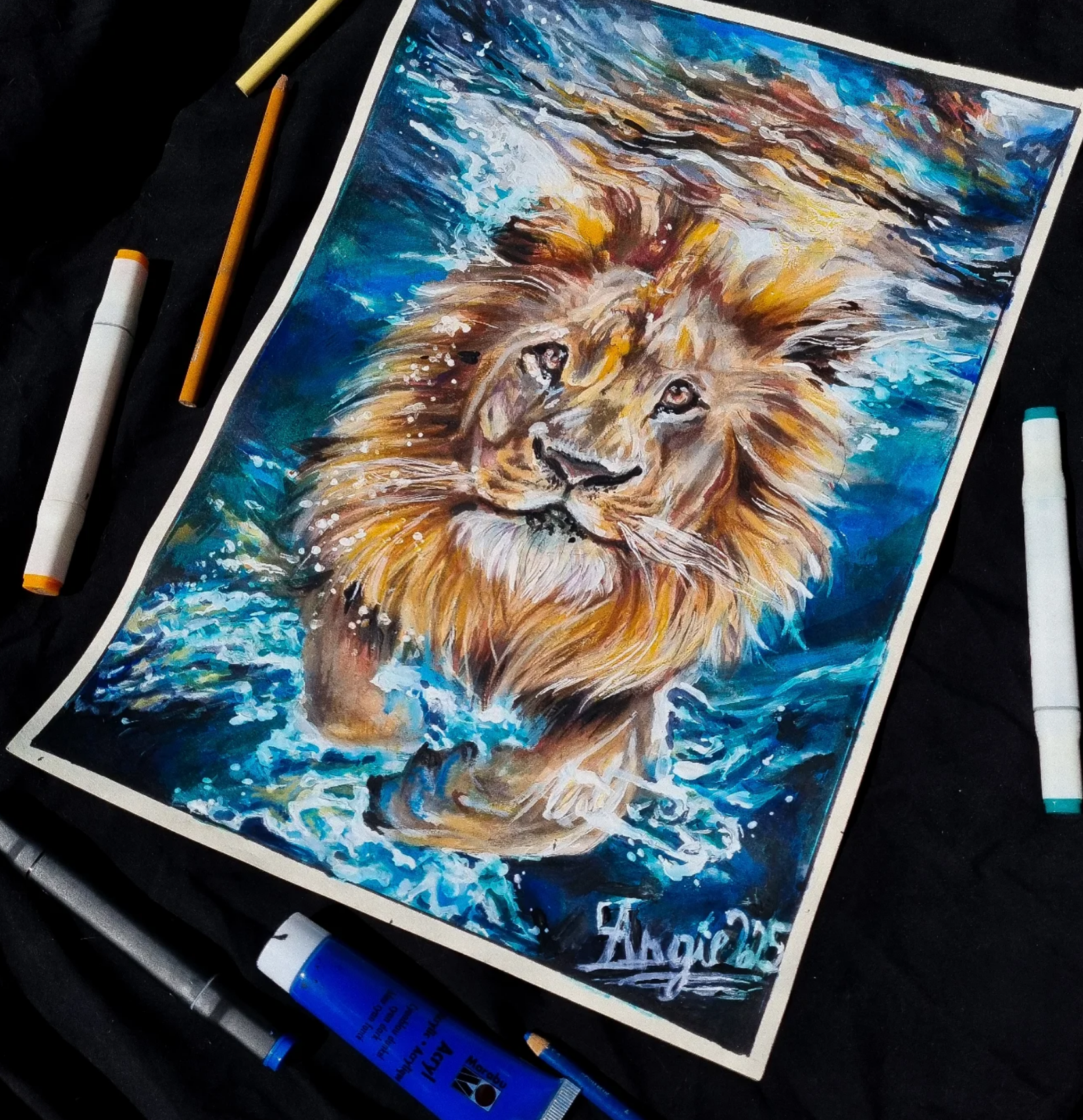For my traditional artwork, I work with colored pencils, acrylics, PanPastels, and ink markers, combining different materials to give each piece depth, texture, and a strong sense of realism.